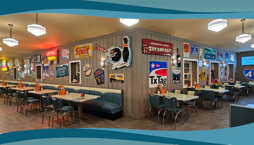 Staying faithful to our mission, Myerscough offers a hearty welcome, unitin’ families in snug dining booths, and dishing out home-cooked meals inspired by the best in Stateside cooking. And we’ve got some mighty fine dining spaces – think baseball-themed seating, tables on the iconic Coke Truck or American School Bus, or get ready to yell “Yee Haw” in the Honkey Tonk, the whole joint is set amidst toe-tappin’ tunes and genuine nostalgic decor plucked straight from the 1950’s.